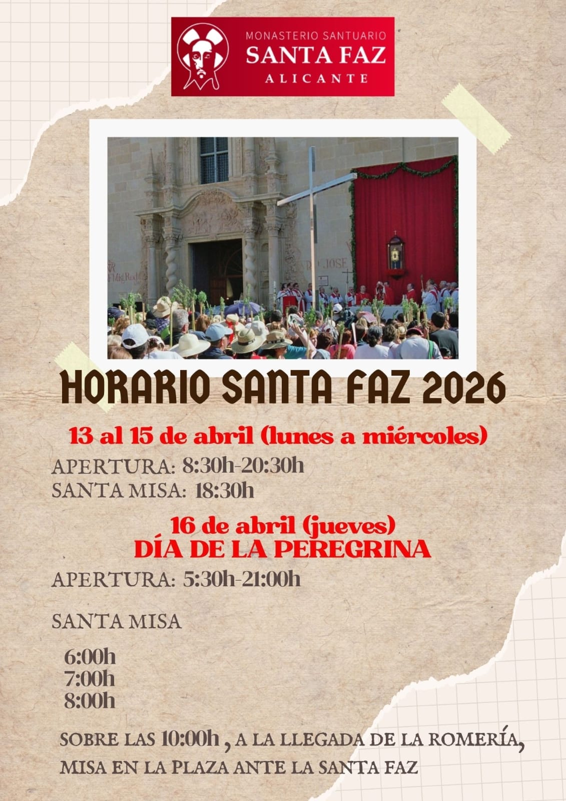 Nada nos dicen los evangelios sobre aquella piadosa mujer que, compadecida del sufrimiento de Jesús, le ofreció su velo para que limpiase su rostro ensangrentado, pero una ininterrumpida tradición ha llegado hasta nuestro tiempo, venerando las imágenes de aquel rostro que quedó grabado en las tres dobleces de aquel velo. Una se encuentra en Roma, otra en Jaén y la tercera, que es la que a nosotros nos ocupa, en el Monasterio de la Santa Faz de Alicante.